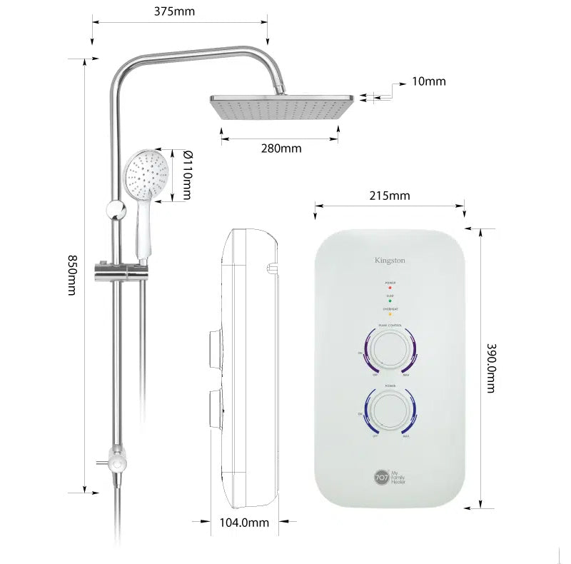 - RAINSHOWER SPECIFICATION: Hand Shower Head: Ø 100mm 3-Way Hand Shower: Misty Splash, Jet Massage, Rain Spray Rainshower: 11”