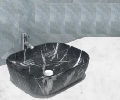 NC-7820-BKM | Ceramic Art Basin - Black Marble Design