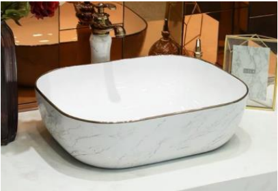 NC-7820-WGM | Ceramic Art Basin - White Marble with Gold Trim Design