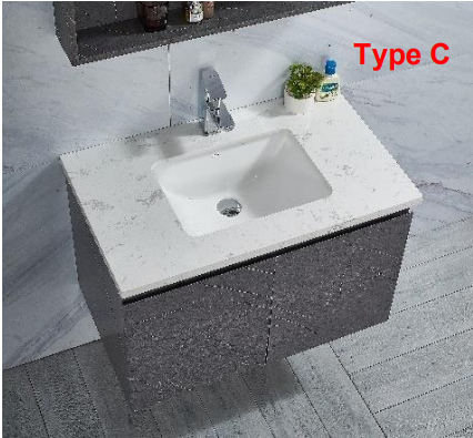- Type C (White Marble Solid Top with Undermount Ceramic Basin): This option features a white marble solid top with an undermount ceramic basin and an optional marble backsplash for added style.
