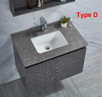 - Type B (800mm Solid Top with Top-mount Ceramic Basin in White): This option includes a 800mm solid top with a top-mount ceramic basin in white, offering a clean and classic look.